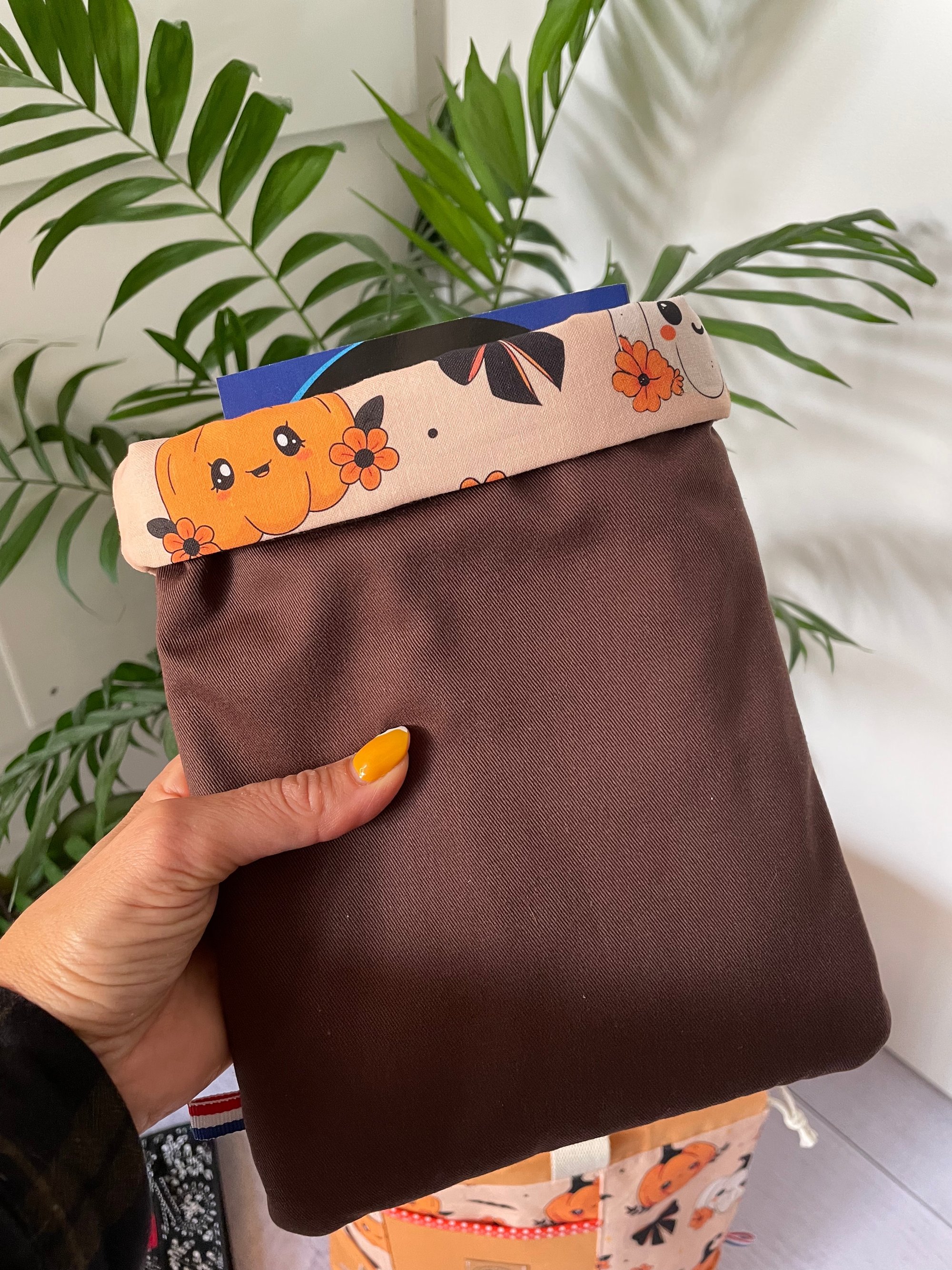 Pochette molletonnée pour livre de poche, avec petite poche avant: Citrouilles mignonnes