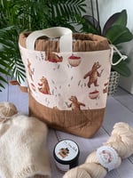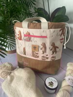 Sac à projet en coton, pouvant contenir vos ouvrages en tricot, crochet, couture et broderie. Cousu à la main avec amour en Charente Maritime.