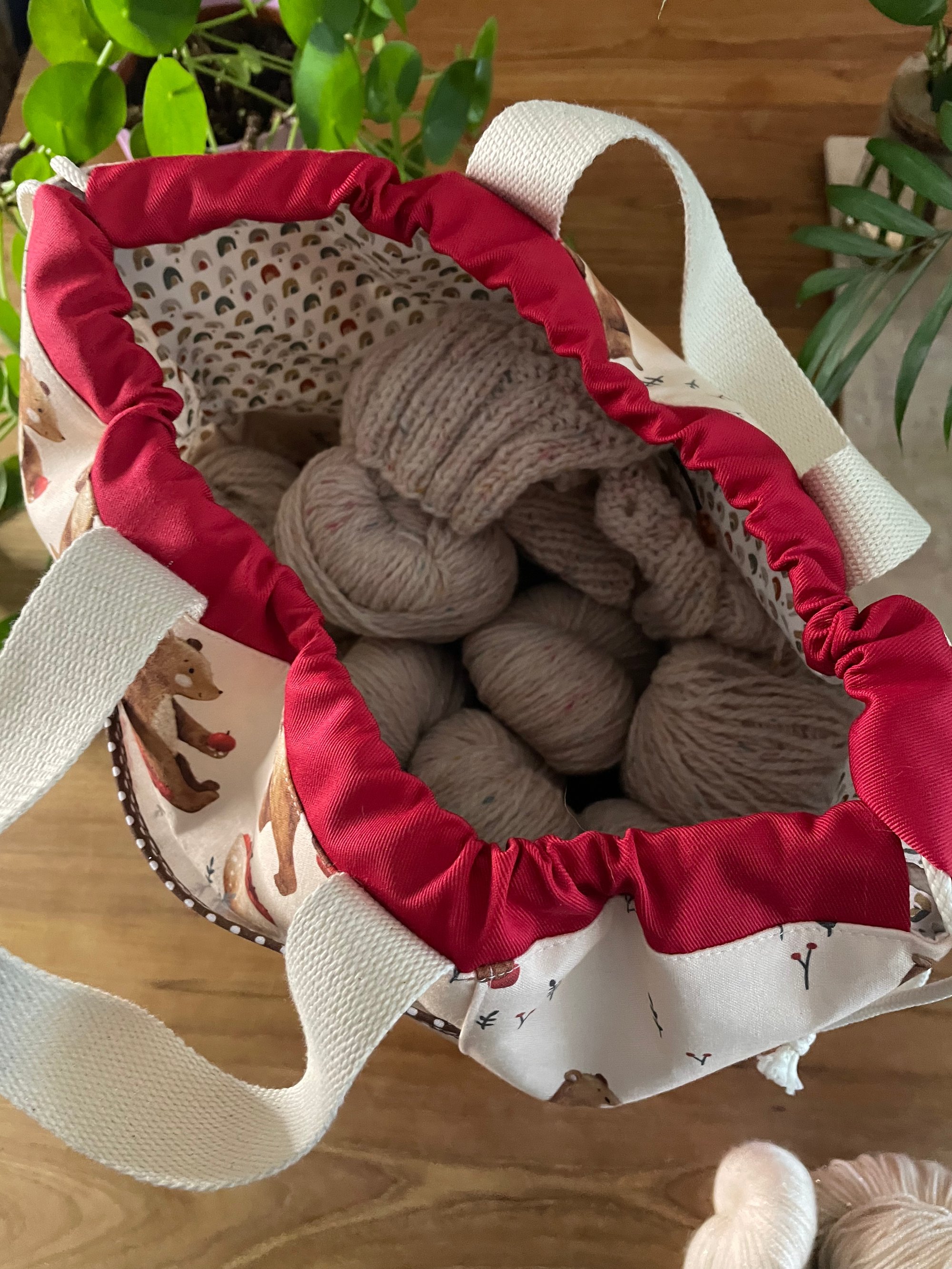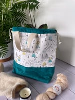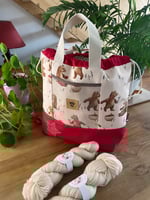 Sac à projet en coton, pouvant contenir vos ouvrages en tricot, crochet, couture et broderie. Cousu à la main avec amour en Charente Maritime.