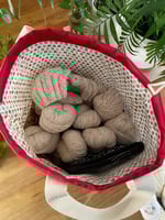 Ce sac est parfait pour transporter vos ouvrages partout. Il peut contenir un projet de taille moyenne, grand châle, petit top, ainsi que 5 à 6 écheveaux .