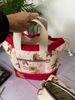 Tissus utilisés: Tissus en popeline de coton de belle qualité, imprimé à la demande, Gabardine de coton rouge, popeline de coton, entoilage pour donner de la tenue au sac.
