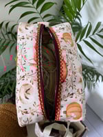 Tissus utilisés: Tissus en coton de belle qualité, ouatine ( pour matelasser la trousse) et entoilage pour donner de la tenue à la trousse.