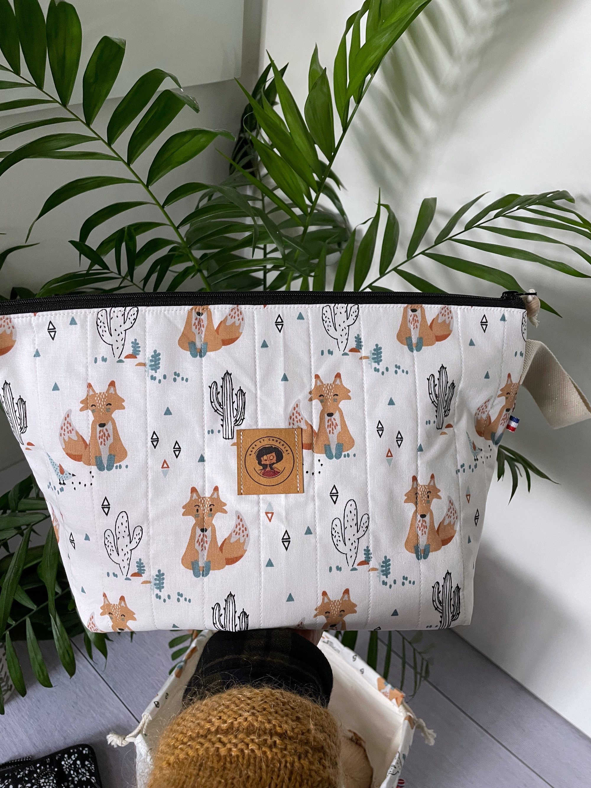 Trousse matelassée pour projets tricots ou crochet taille moyenne: Coyotte