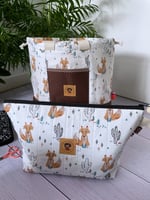 Trousse souple, avec large ouverture pouvant accueillir un projet tricot ou crochet: chaussettes, layettes, bonnets, mitaines, châles, ....