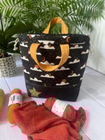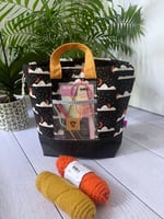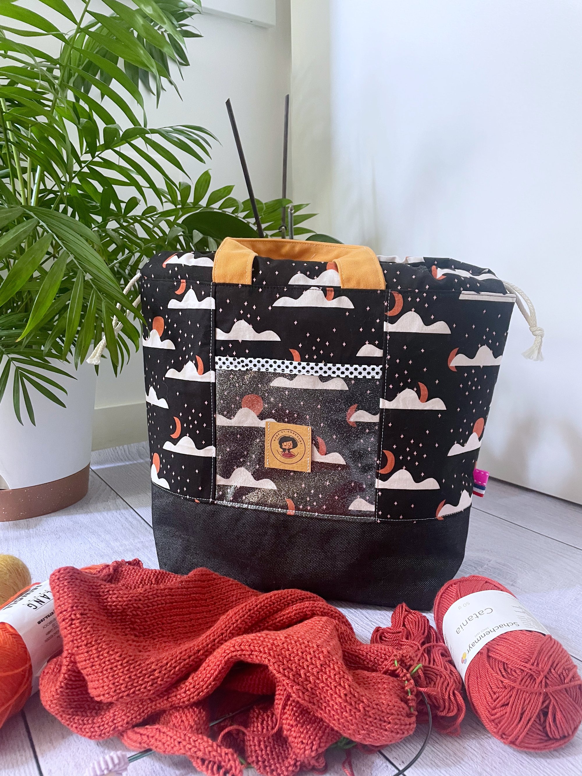 Sac à projet en coton, pouvant contenir vos ouvrages en tricot, crochet, couture et broderie. Cousu à la main avec amour en Charente Maritime.